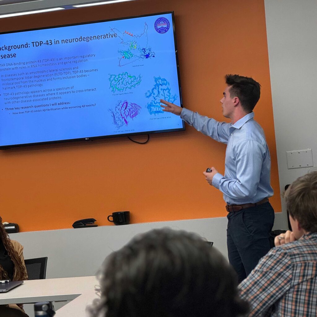 Gatch’s Clemson research focuses on understanding the abnormal aggregation of disease-associated proteins and how interactions between different proteins contribute to the progression of Alzheimer’s disease and other neurodegenerative disorders.