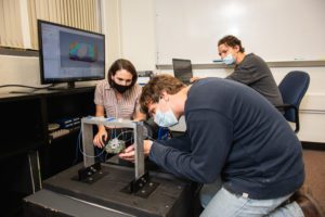 Among the students conducting research under Redmond is John Bell, who is pursuing a Ph.D. He was the first student in her lab to work on PUFFER and now executes the structural dynamic testing used to correlate models of PUFFER.