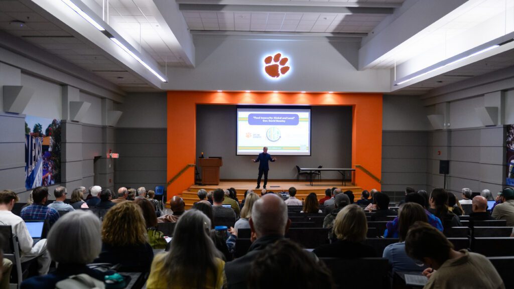 The first speaker was Former South Carolina Governor David Beasley, who headlined the Humanities Hub’s Fourth Annual Lectures in Law and the Humanities, sponsored by Loebsack and Brownlee, LLC. Beasley’s talk was the highlight of several days of events focused on “Food Insecurity: Global and Local.”