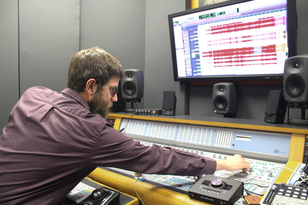 He says that his classes in the Brooks Center were his first exposure to Pro Tools editing software and multi-track mixing. After his first entry-level audio class, he was able to find a way into more advanced audio technology courses, eventually completing the capstone project, which was a 45-minute CD. His undergraduate thesis for the Honors College also centered on audio technology, focusing on analog-to-digital signal converters.