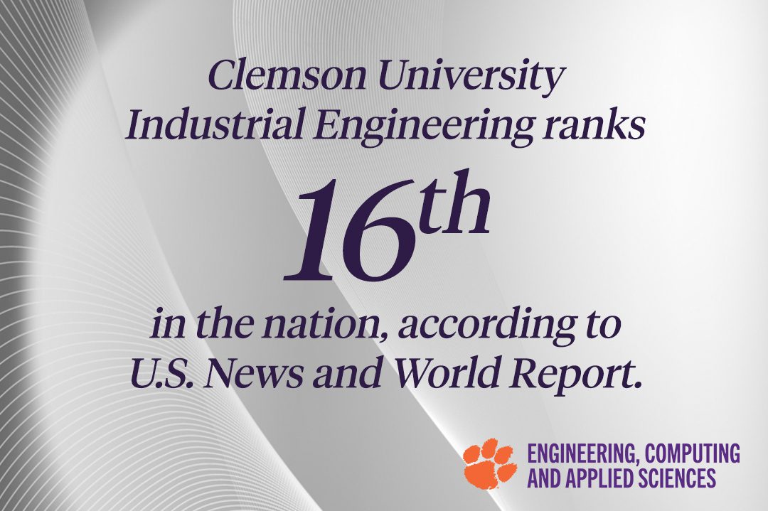 Clemson University’s Department of Industrial Engineering moved up five spaces and now ranks 16th in the nation overall and 11th among public universities in the latest U.S. News & World report rankings. Here’s what makes the department such a special place: