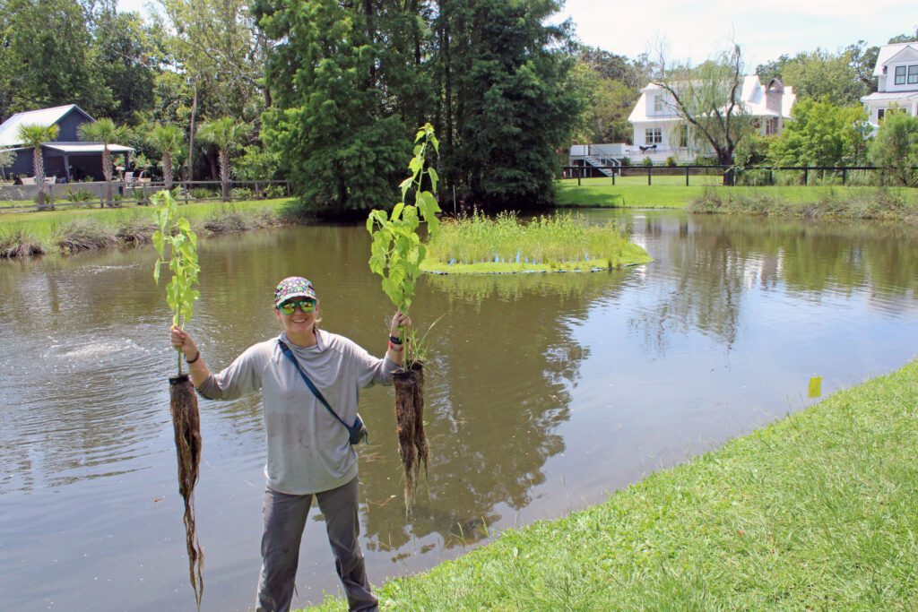 Doctoral student Clare Escamilla is working on stormwater ponds in the Lowcountry, where much of the water is brackish, or a mixture of saltwater and freshwater, meaning that some plants used in stormwater ponds with freshwater, would not survive.