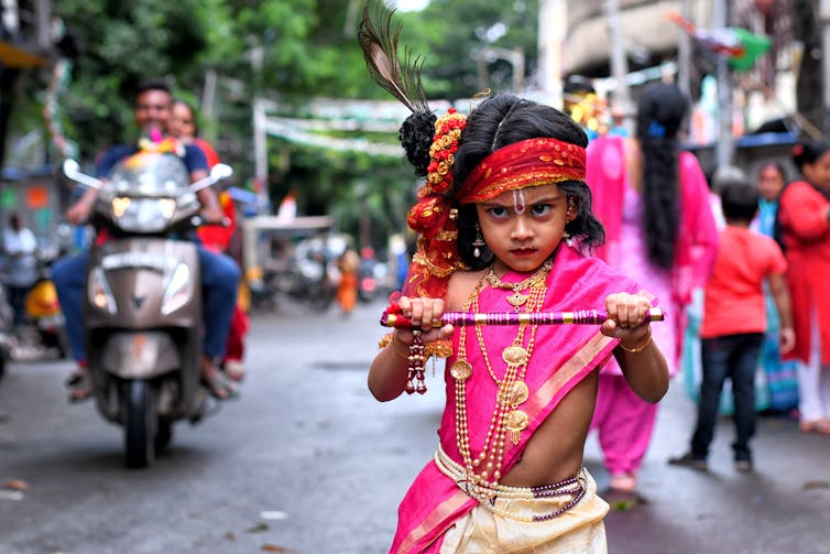The story of Krishna’s divine birth is told in households across South Asia on Krishna Janmashtami. According to lore, Krishna’s uncle, Kamsa, the king of Mathura, a town in northern India, heard a celestial voice prophesying in his court that his downfall would come at the hands of the eighth child born to his cousin Devaki.