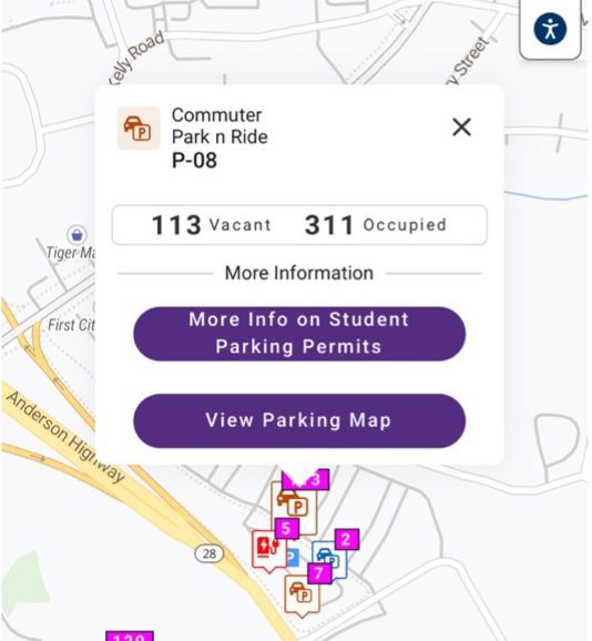 Using the Tigers Commute app, search for your preferred lot (you can filter by permit type) and tap the lot’s icon to open the parking lot menu. From there, select “View Parking Map” to view available spaces. You can also tap “More Info on Parking Permits” to view relevant regulations and guidelines. The Tigers Commute app recently earned an Award of Excellence from the International Parking and Mobility Institute (IPMI).