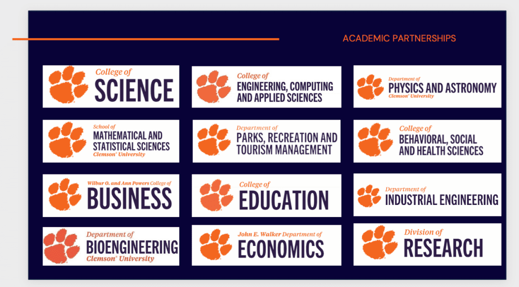“We serve as the ‘office of innovation’ for Clemson’s research enterprise,” says Chase Kasper, senior deputy director of CURF. “There’s a lot that goes on here behind the curtain, and I think people would be thrilled to hear about it. But we’re not here to talk about ourselves -our role is marketing the outputs from the University’s research enterprise.”